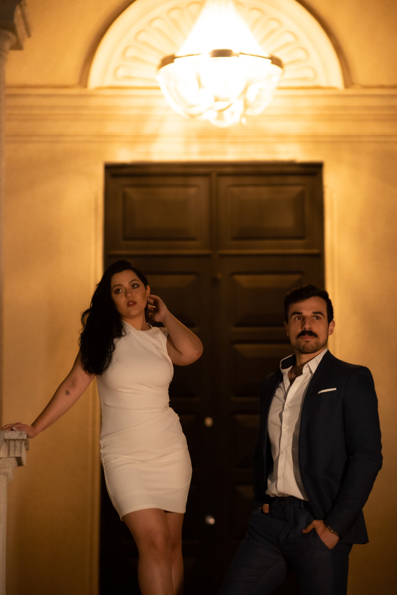 Quando terminamos no estúdio, fomos para a Vila Beauté, um lugar incrível que se parece com um castelo. As torres e a arquitetura antiga deram um toque de realeza à noite. Kel e Matheus pareciam verdadeiros príncipes, e princesas modernos, se encaixando perfeitamente no ambiente.